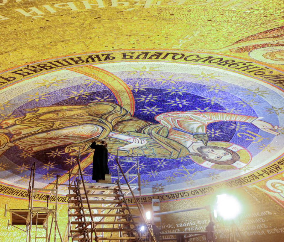 Последње дјелове скеле на којој је чак 70 српских и руских умјетника осликавало куполу на висини од 70 метара радници су јуче утоваривали на камион. Украшавањем куполе завршена је само прва фаза радова, а следи израда и уградња додатних 2.800 квадрата мозаика у олтарском дијелу. И након тога остаће још доста посла и на унутрашњости и на спољашњости пошто унутрашњи простор храма треба да буде покривен са укупно 15.000 квадрата мозаика.