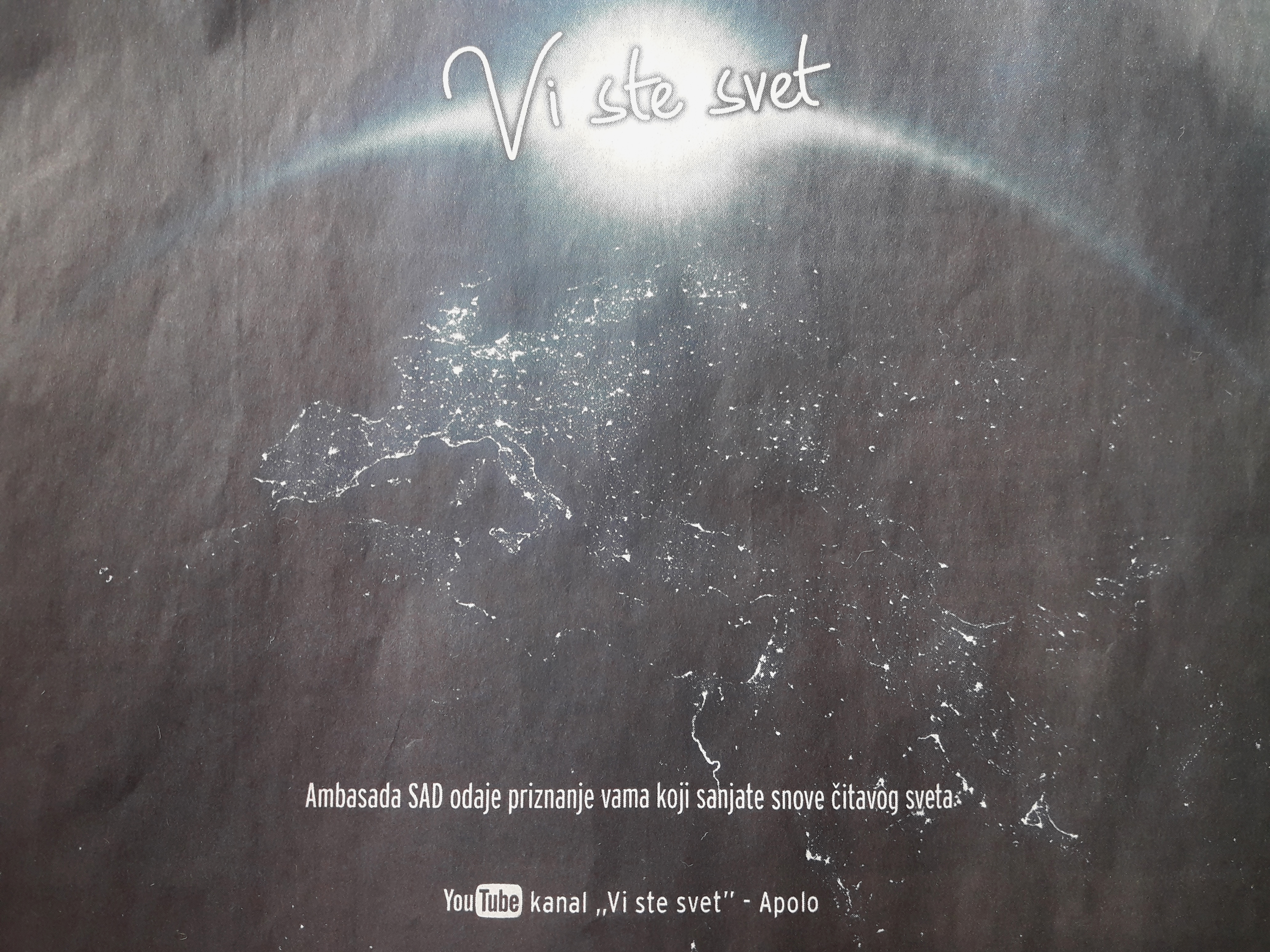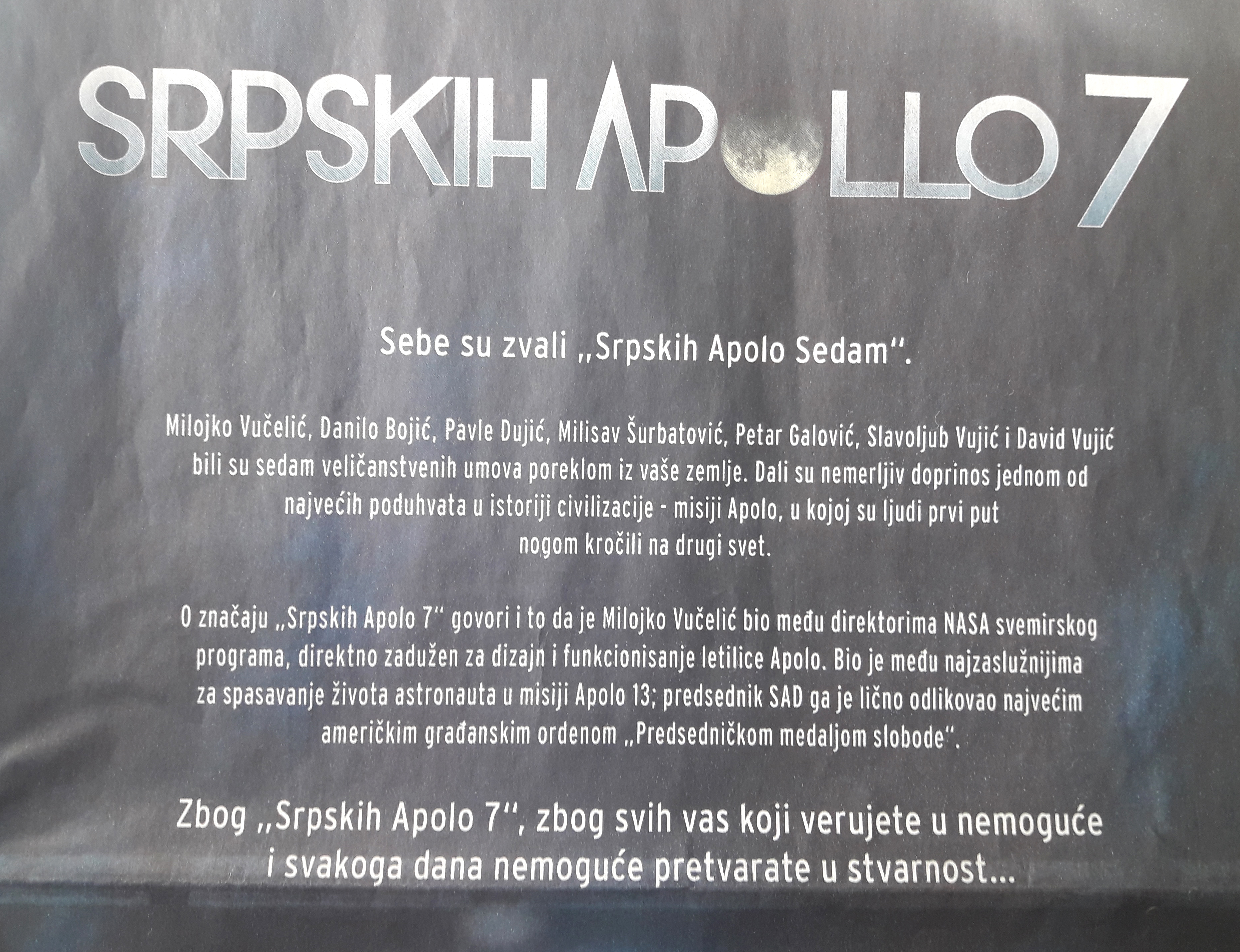 У данашњој „Политици“, на цијелој страни, појавио се оглас америчке амбасаде у Београду под насловом „Srpskih Apollo 7“ /види слике доле: